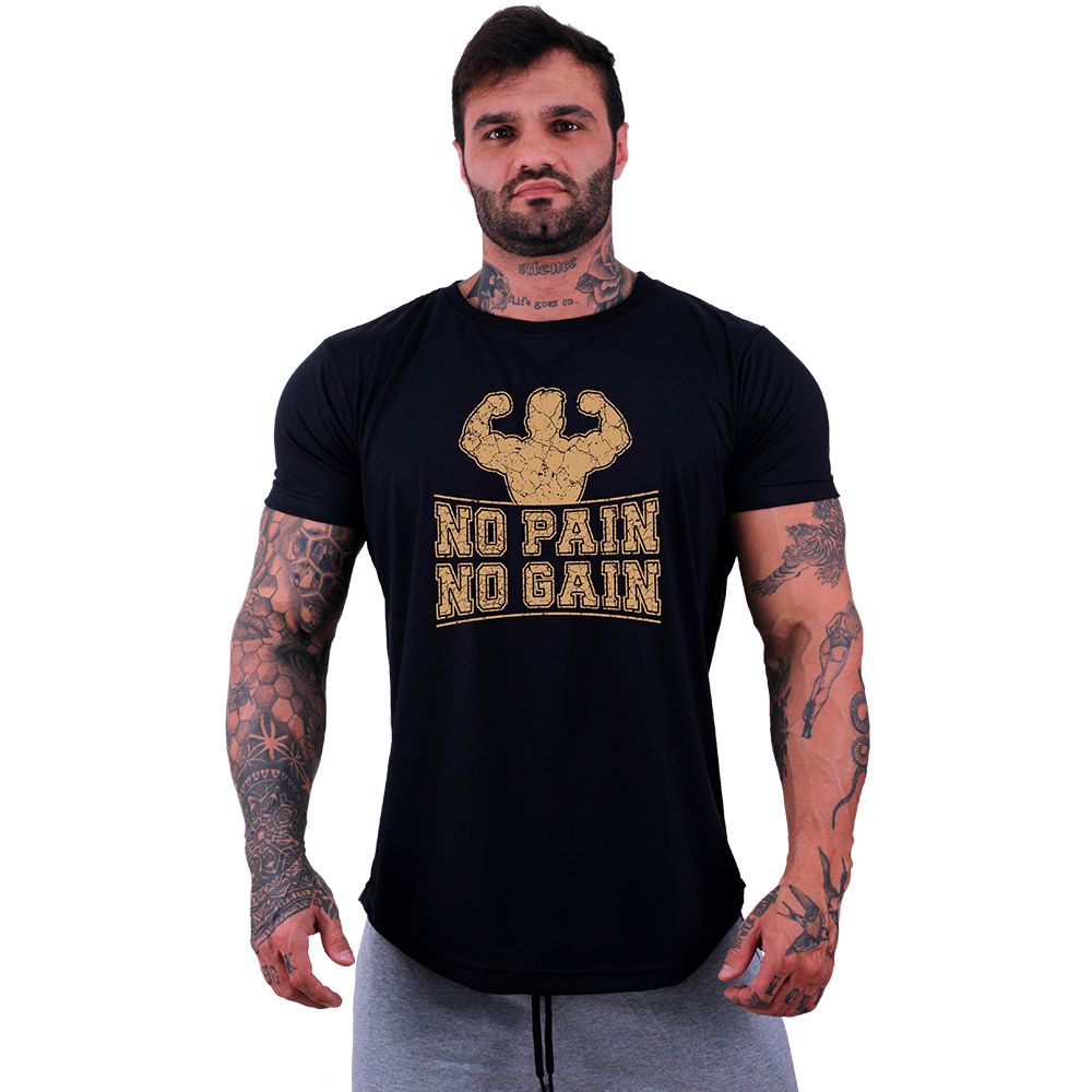Camiseta Longline Masculina Manga Curta MXD Conceito No Pain No Gain Strong