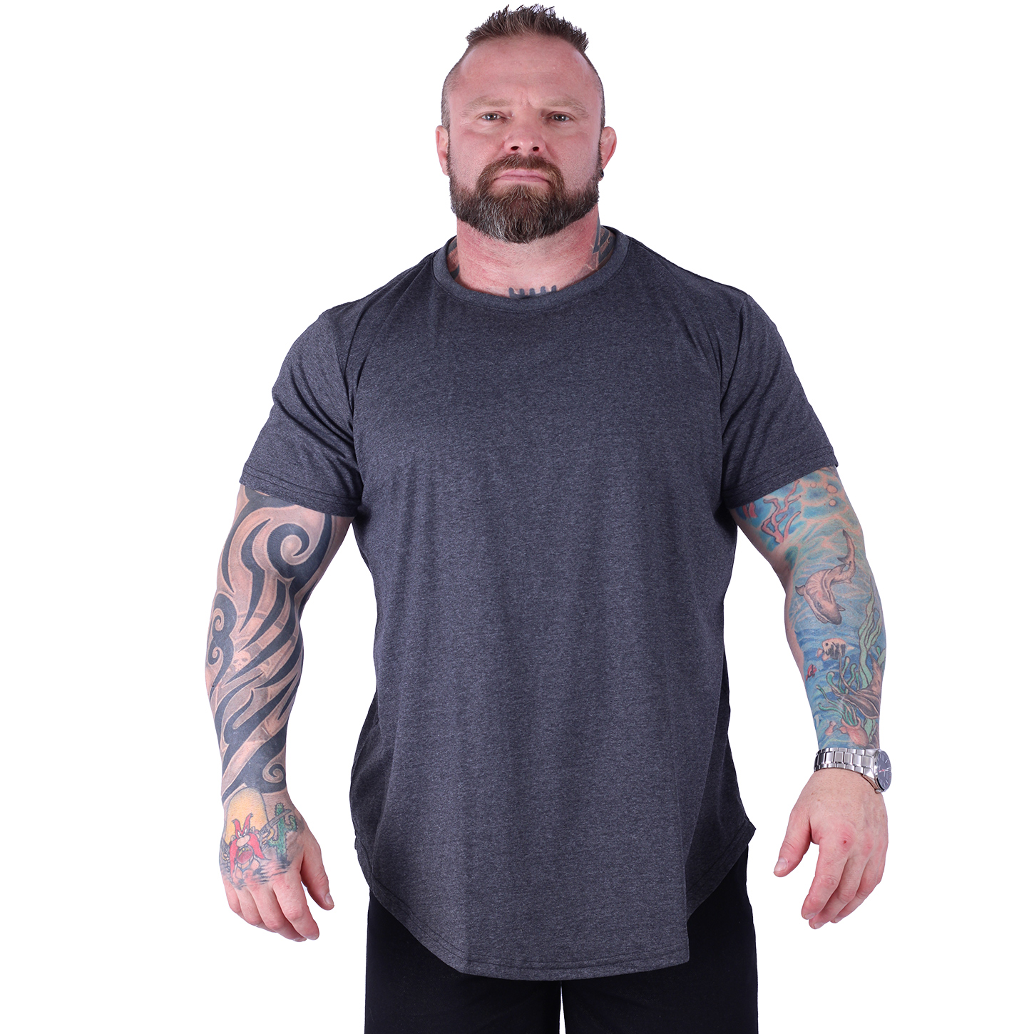 Camiseta Longline Plus Size MXD Conceito Manga Curta Mescla Preto