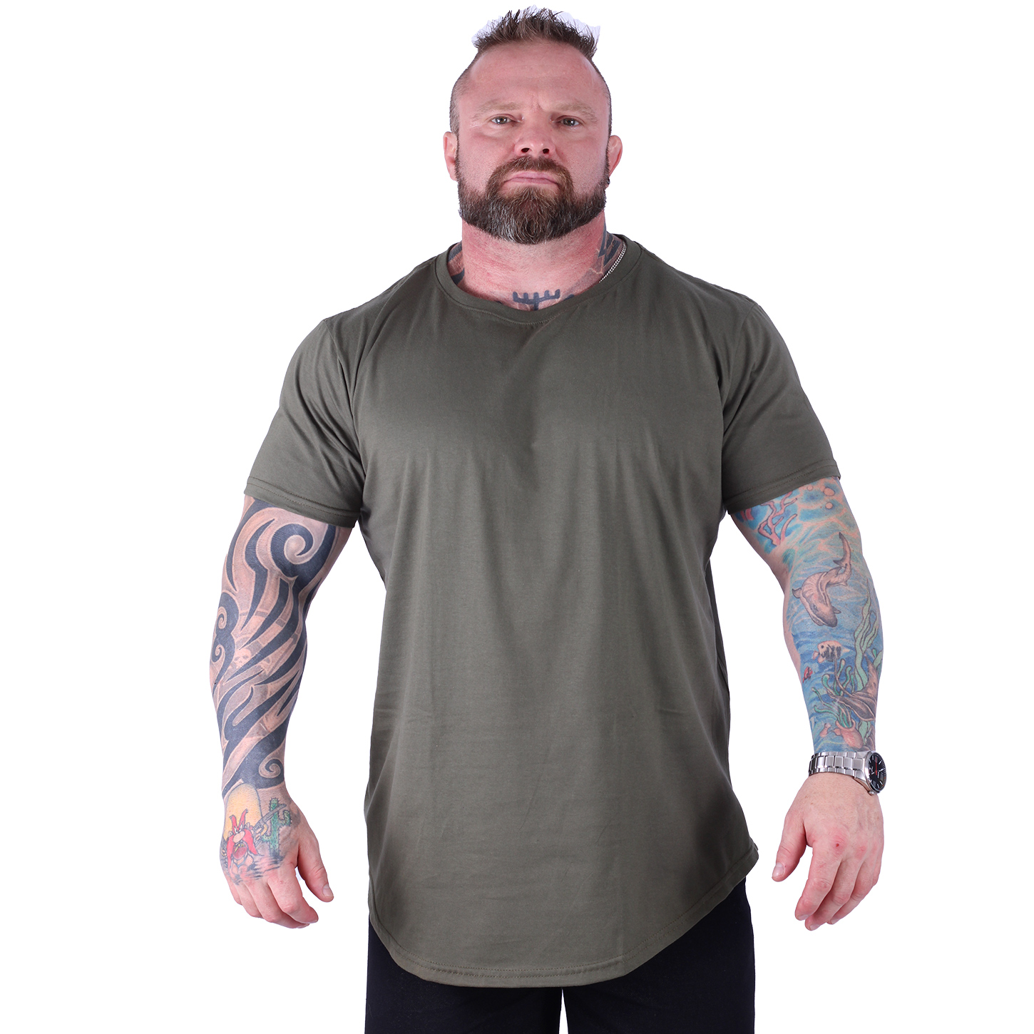 Camiseta Longline Plus Size MXD Conceito Manga Curta Verde Militar