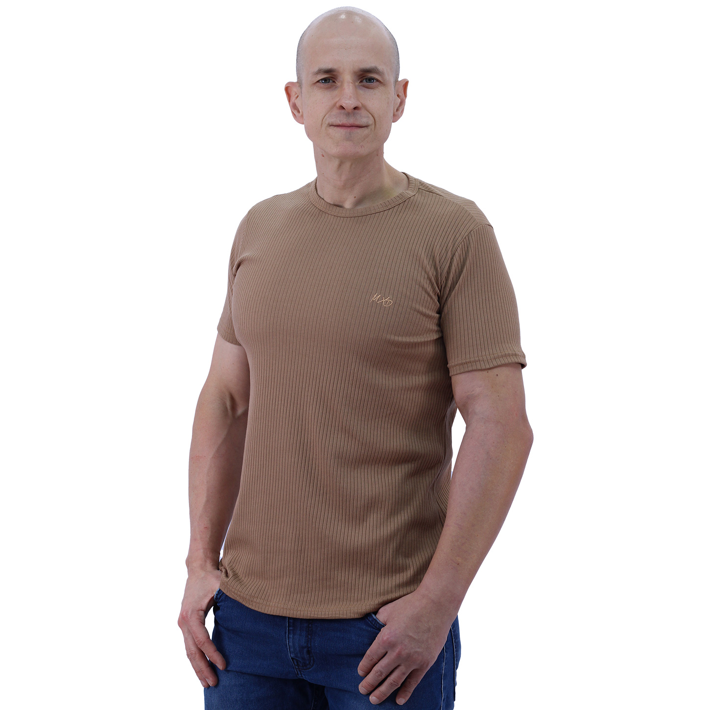 Camiseta Masculina Malha Canelada Tradicional MXD Conceito Bege