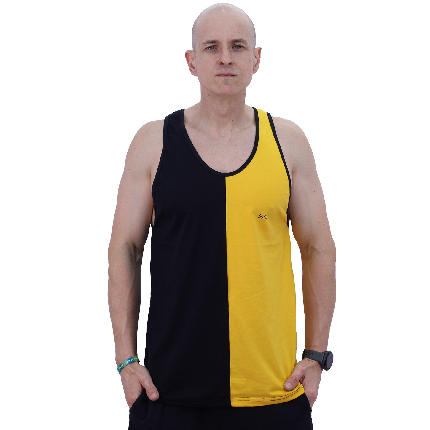 Regata Cavada Masculina Bicolor MXD Conceito Lisa Amarelo e Preto Meio-a-Meio