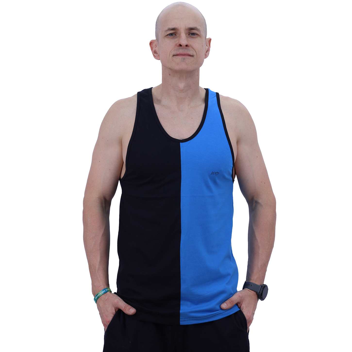 Regata Cavada Masculina Bicolor MXD Conceito Lisa Azul e Preto Meio-a-Meio